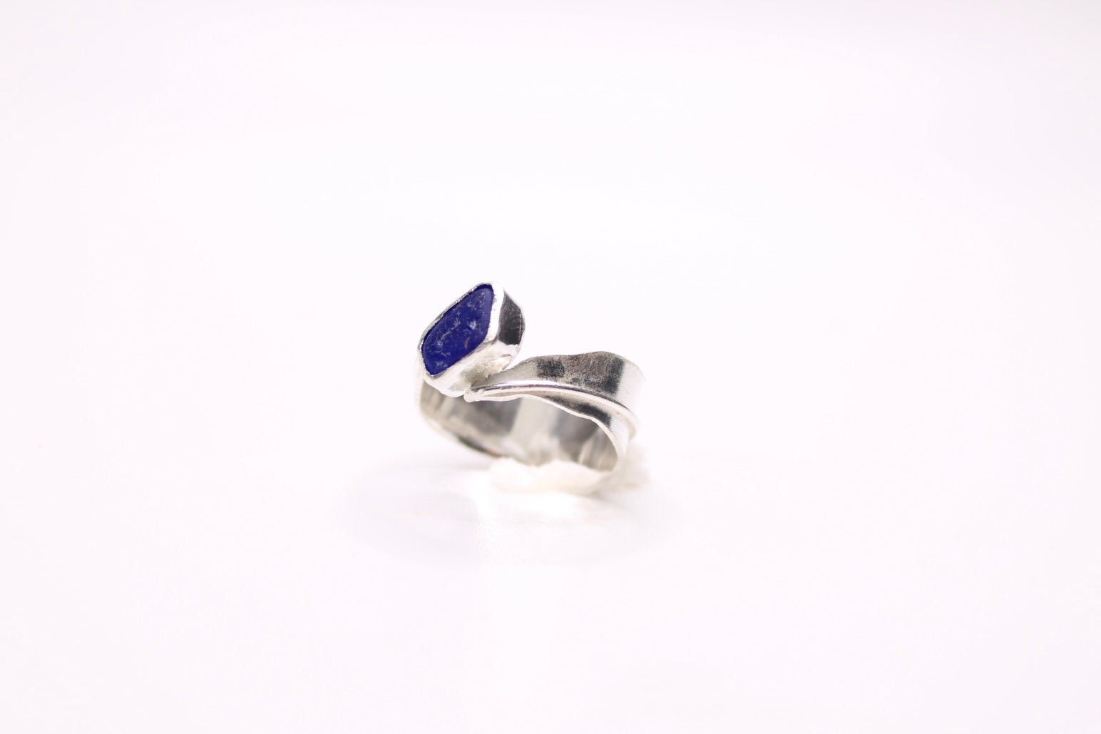 Vivid cobalt blue sea glass is set on a band reminiscent of a piece of kelp.