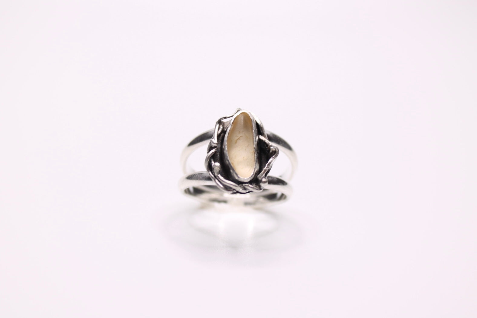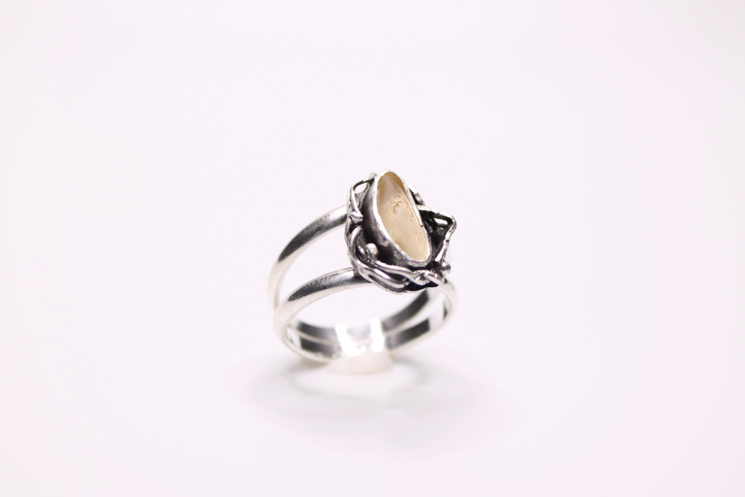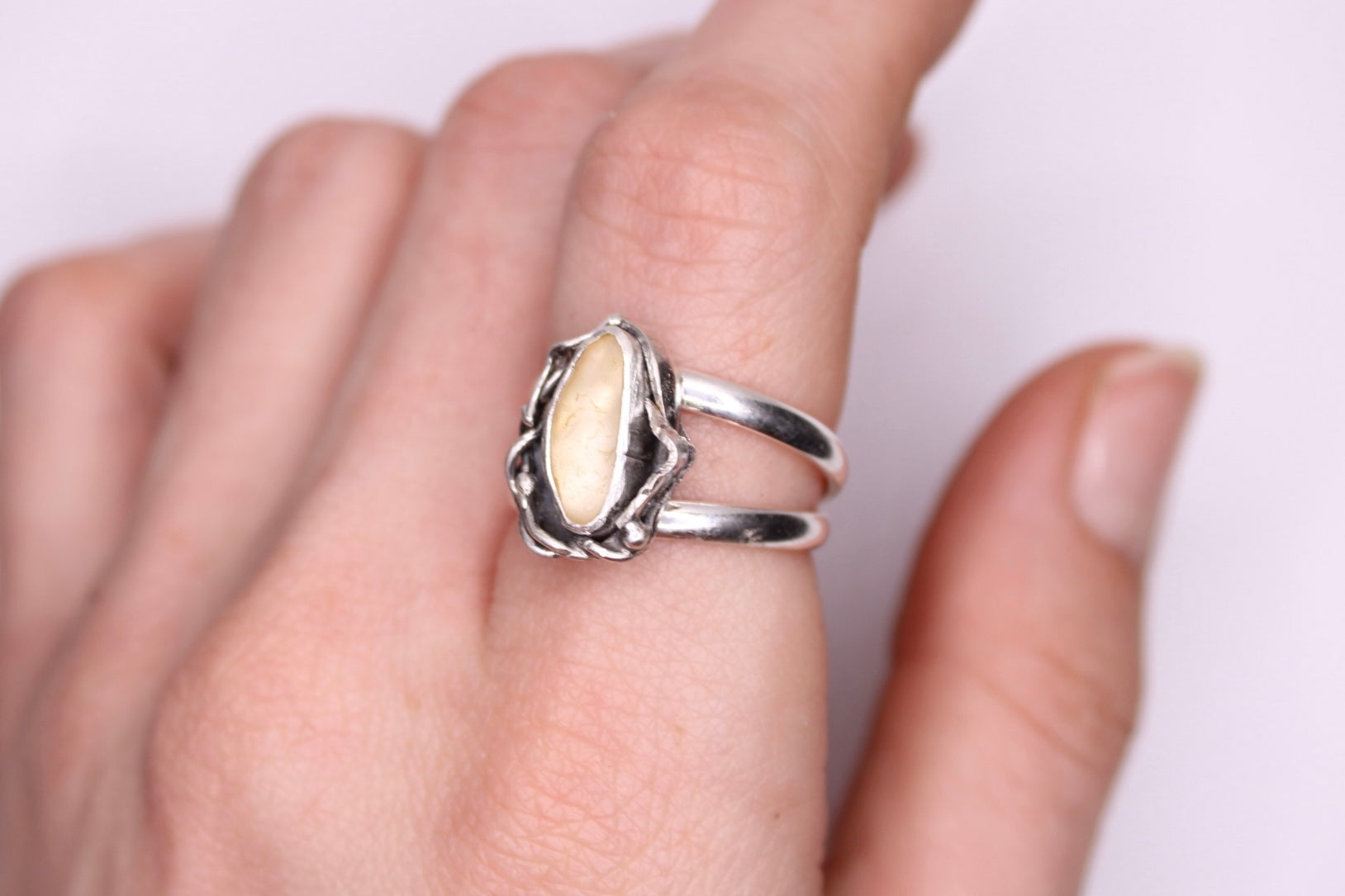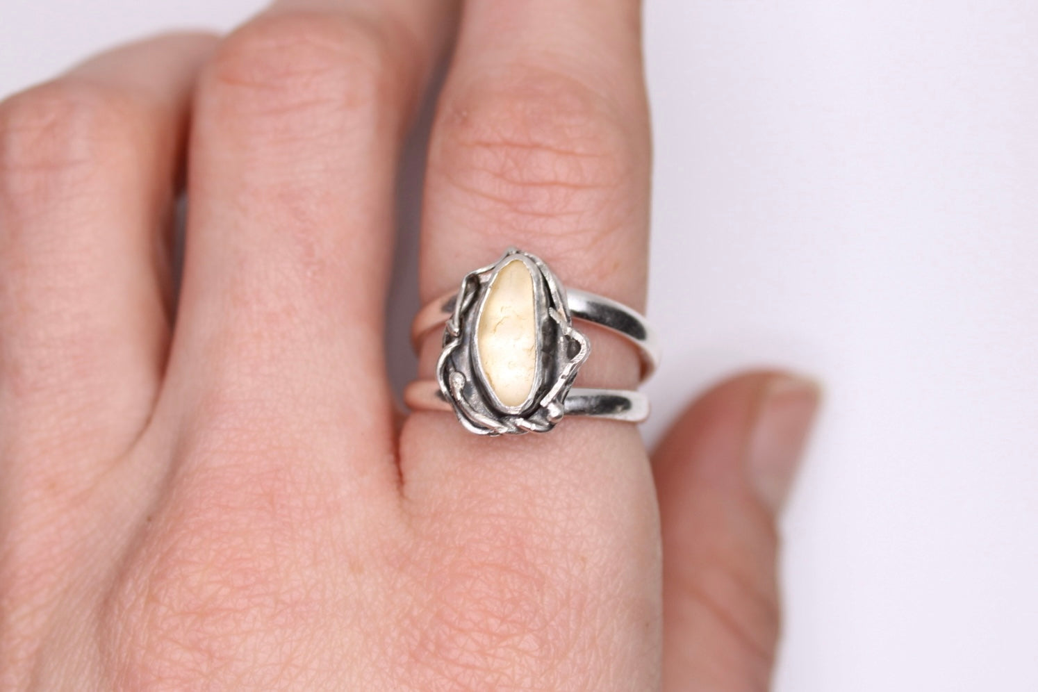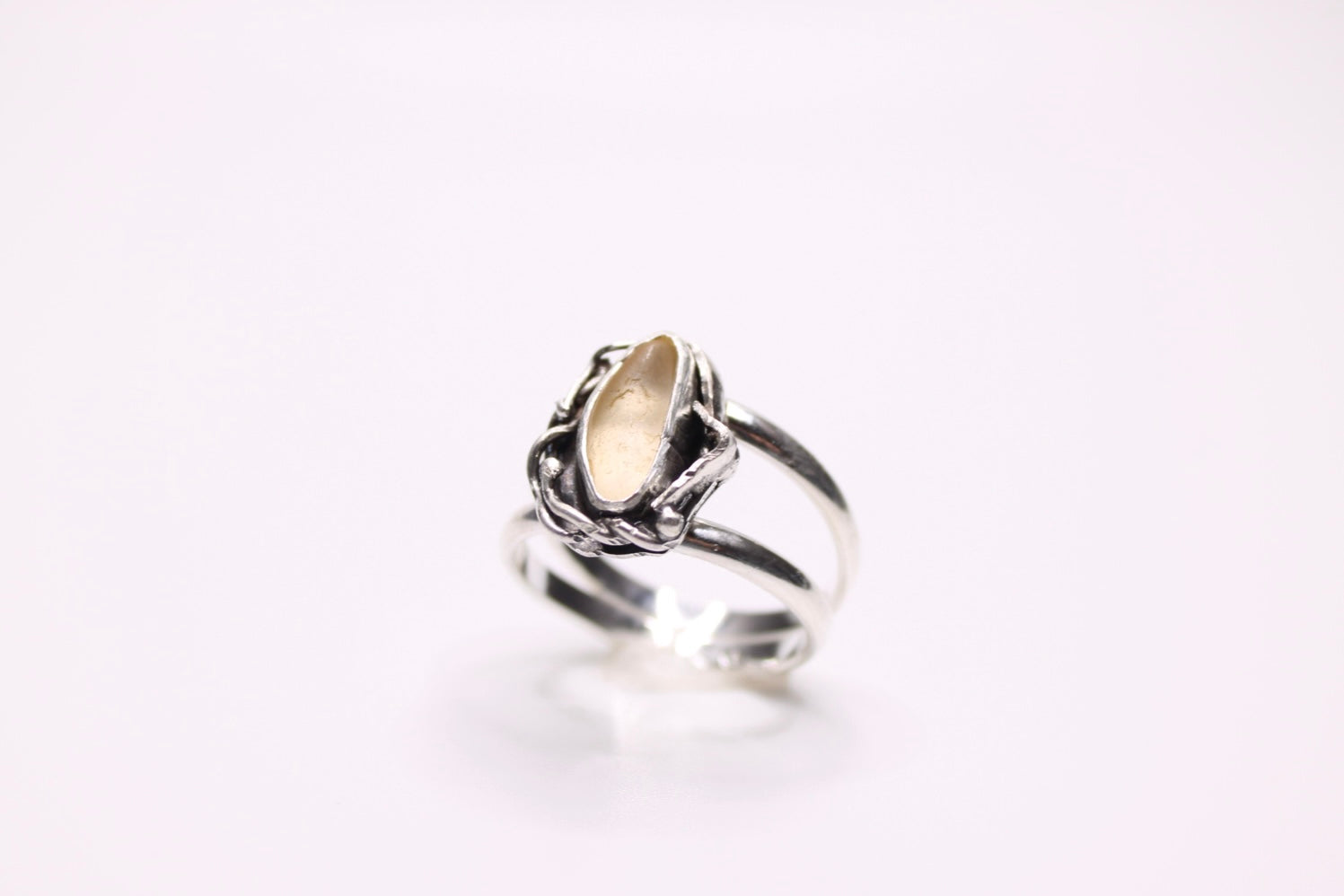 Rare light yellow pacific coast sea glass is held by tiny, twisting, tangled bull kelp.
