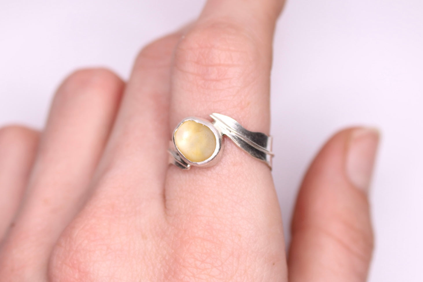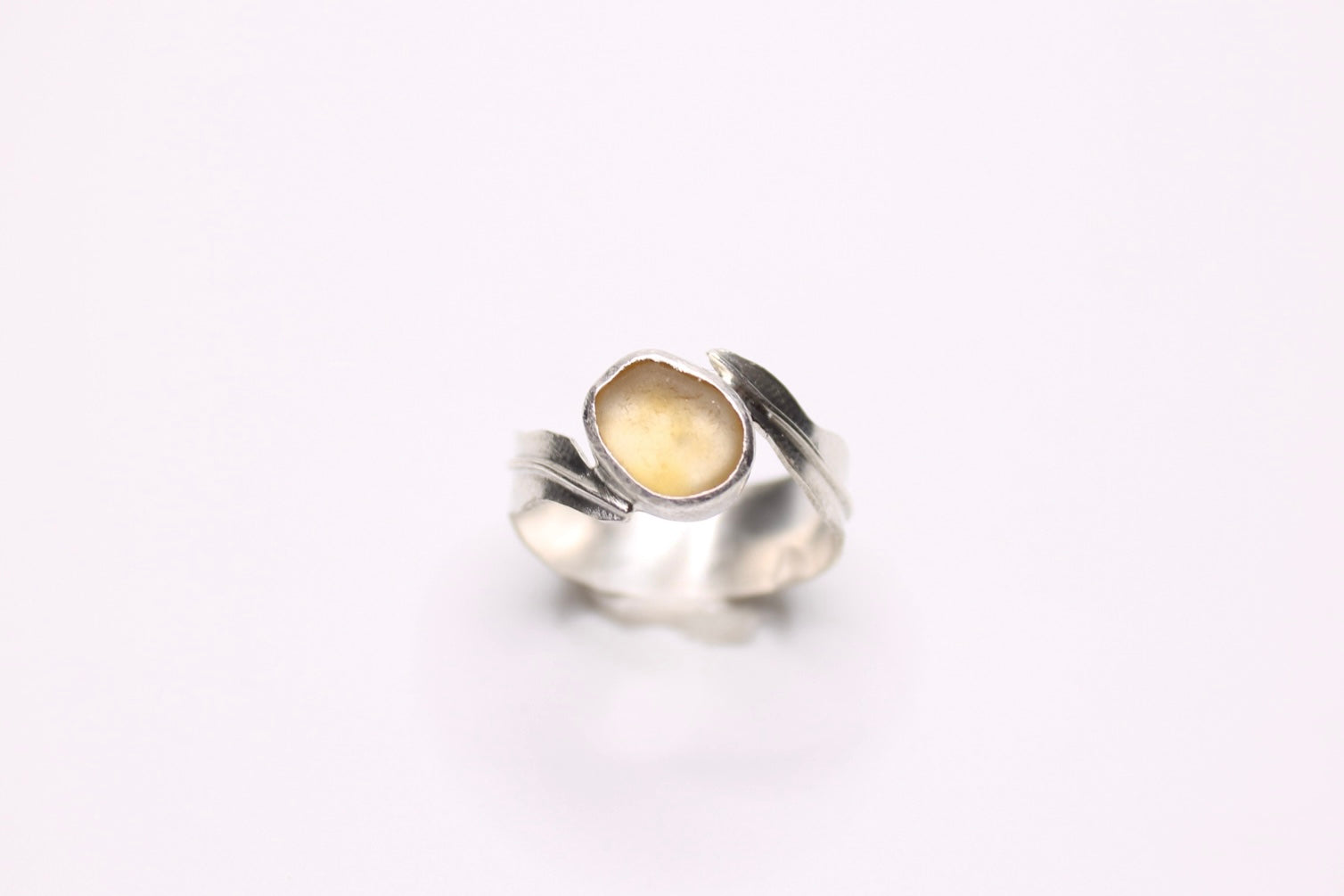 Rare light yellow pacific coast sea glass set on a band reminiscent of a piece of kelp.