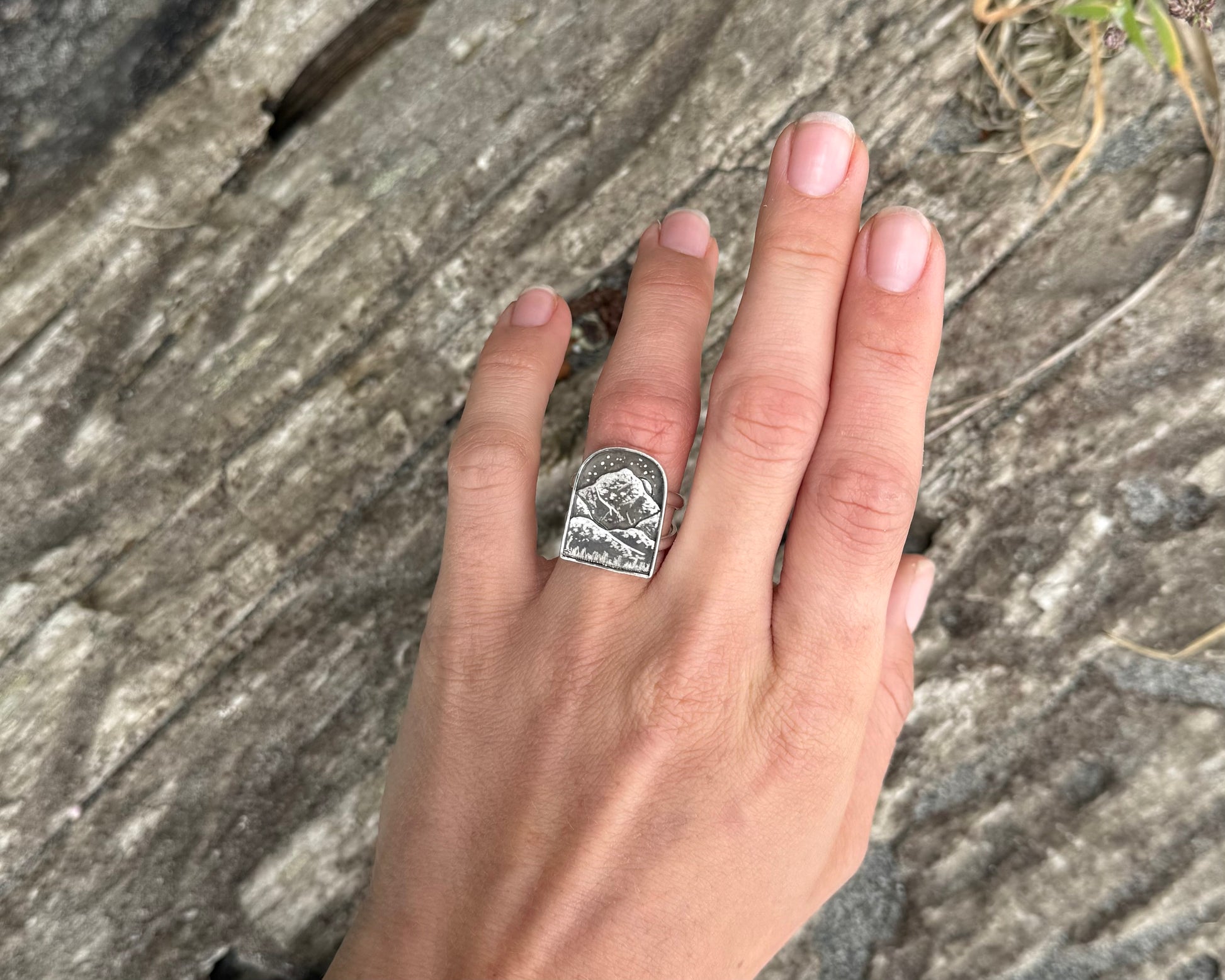 Each vignette ring is hand-fabricated from layered sterling silver and engraved to reveal a landscape only your hands will hold. No casting, no molds, no repetition.