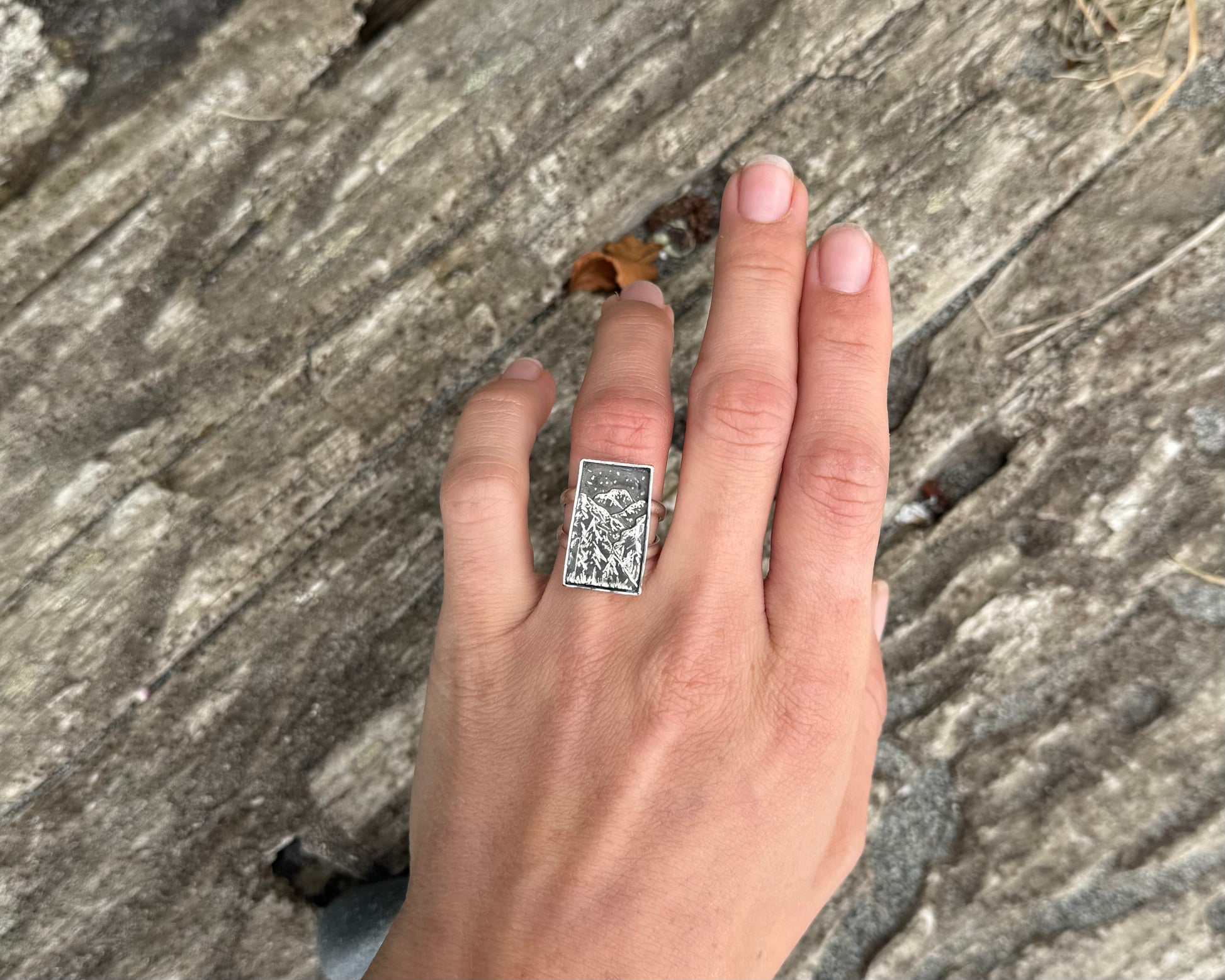 Each vignette ring is hand-fabricated from layered sterling silver and engraved to reveal a landscape only your hands will hold. No casting, no molds, no repetition.