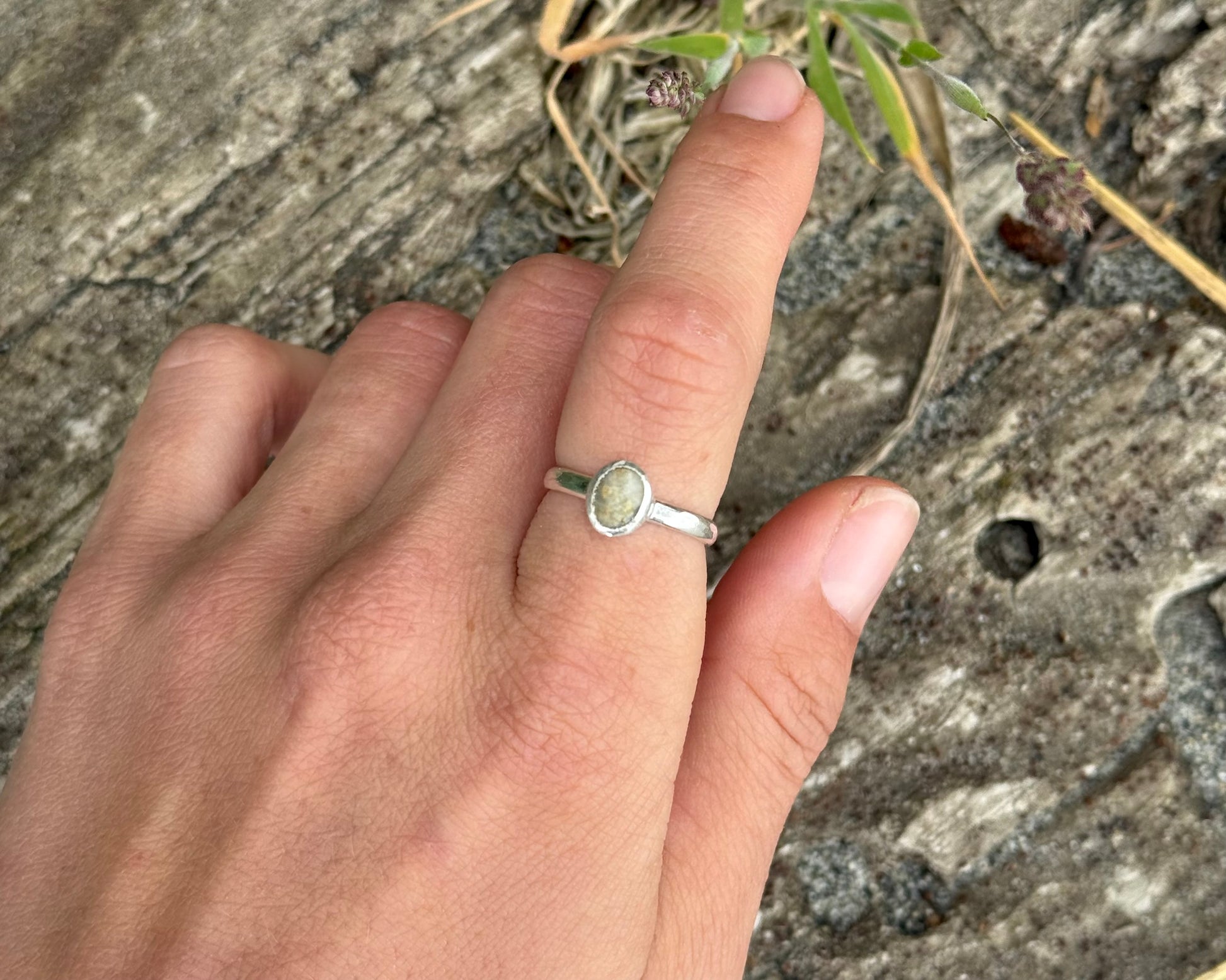 As-found ocean treasures set on a simple, mottled band. Perfect paired with our Tidal Stackers or keep solo for simple, daily wear